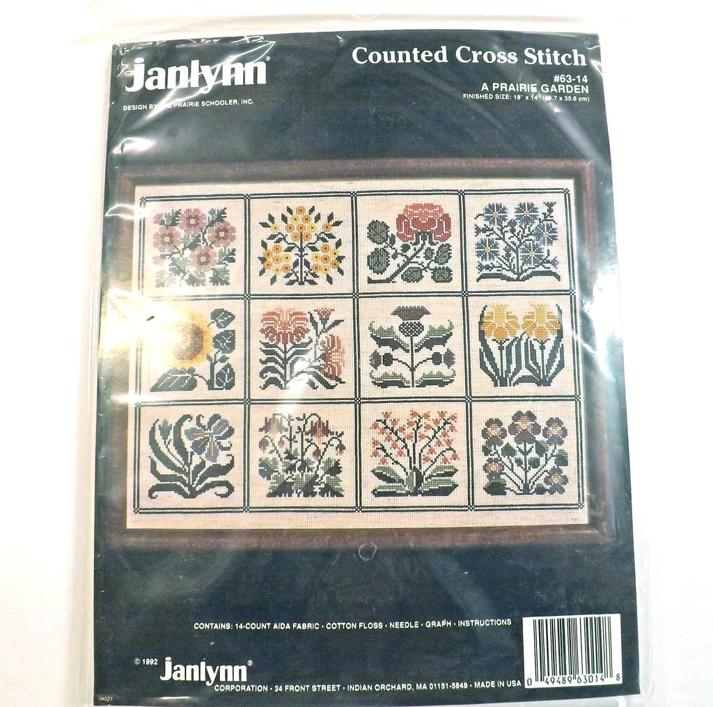 This kit is a Janlynn A Prairie Garden cross stitch kit from the Prairie Schooler, 1992. Kit is new in package, unopened.