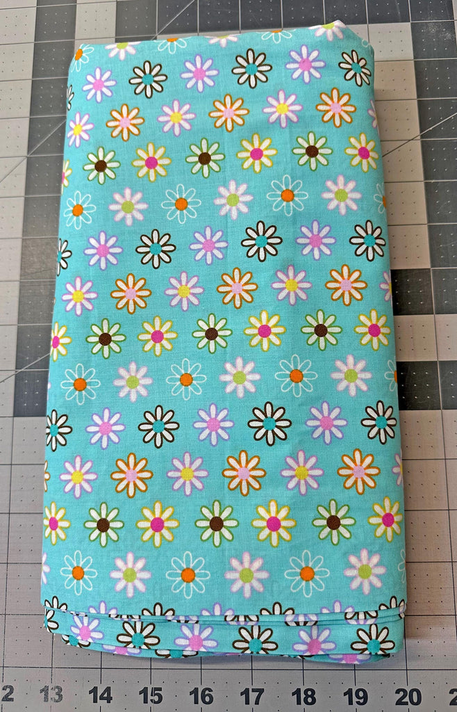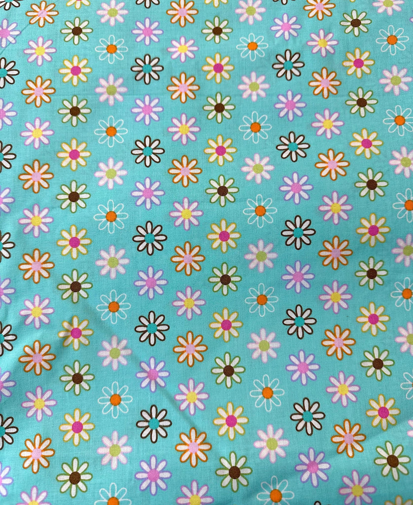 This listing is for a 3 1/4 yd. cut of Happi by Dena retro blue flower quilt cotton fabric.