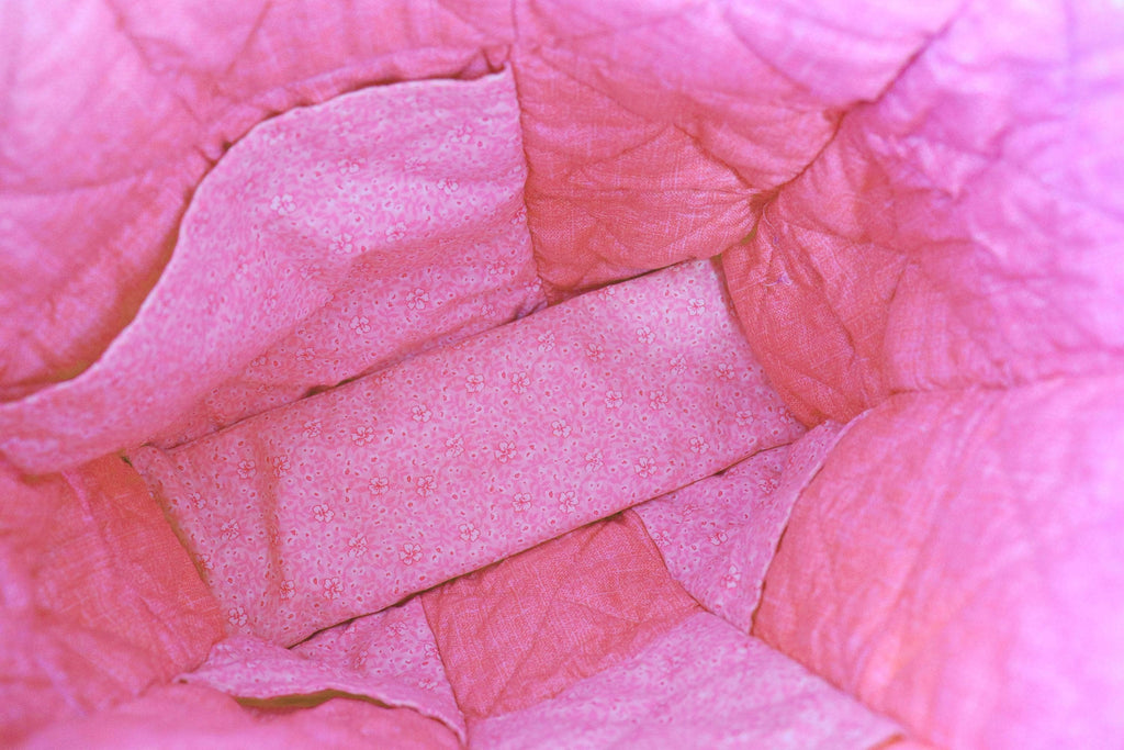 All seams have been clipped by hand. The handles have been quilted with batting for extra softness and stitched with a decorative quilt stitch.