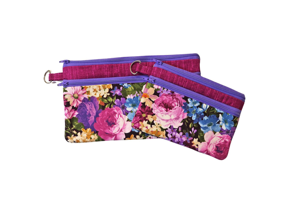 Purple Floral Double Zipper Pouch: Small or Large Bag